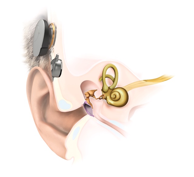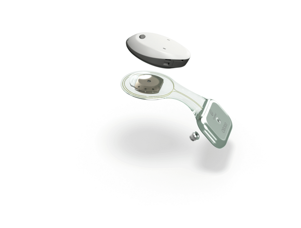 Das Cochlear Osia System ist ein aktives Knochenleitungsimplantat, das auf Piezo-Technologie basiert. Es wandelt Schall in mechanische Vibrationen um, die direkt über den Knochen an die Cochlea weitergegeben werde